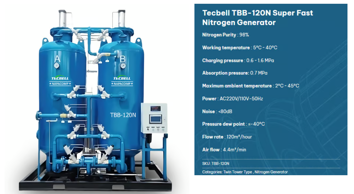 Why choose Tecbell TBB-120N super fast Nitrogen gas generator?