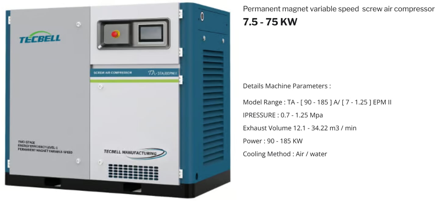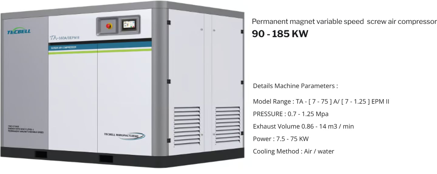 The new generation high efficiency energy saving host independently developed and designed by Tecbell with optimized design of the rotor profile and exhaust port structure, uses contact surfaces, contact lines and leakage triangle areas to achieve optimal performance and improve volumetric efficiency.