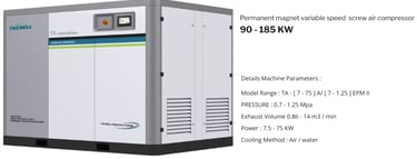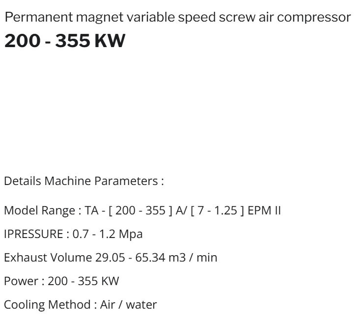 High - efficiency permanent magnet variable speed synchronous motor is adopted and the motor with F class insulation B class temperature rise, increased base number and IP55 protection level is optimized for air compressor applications with motor efficiency up to 96.8 %